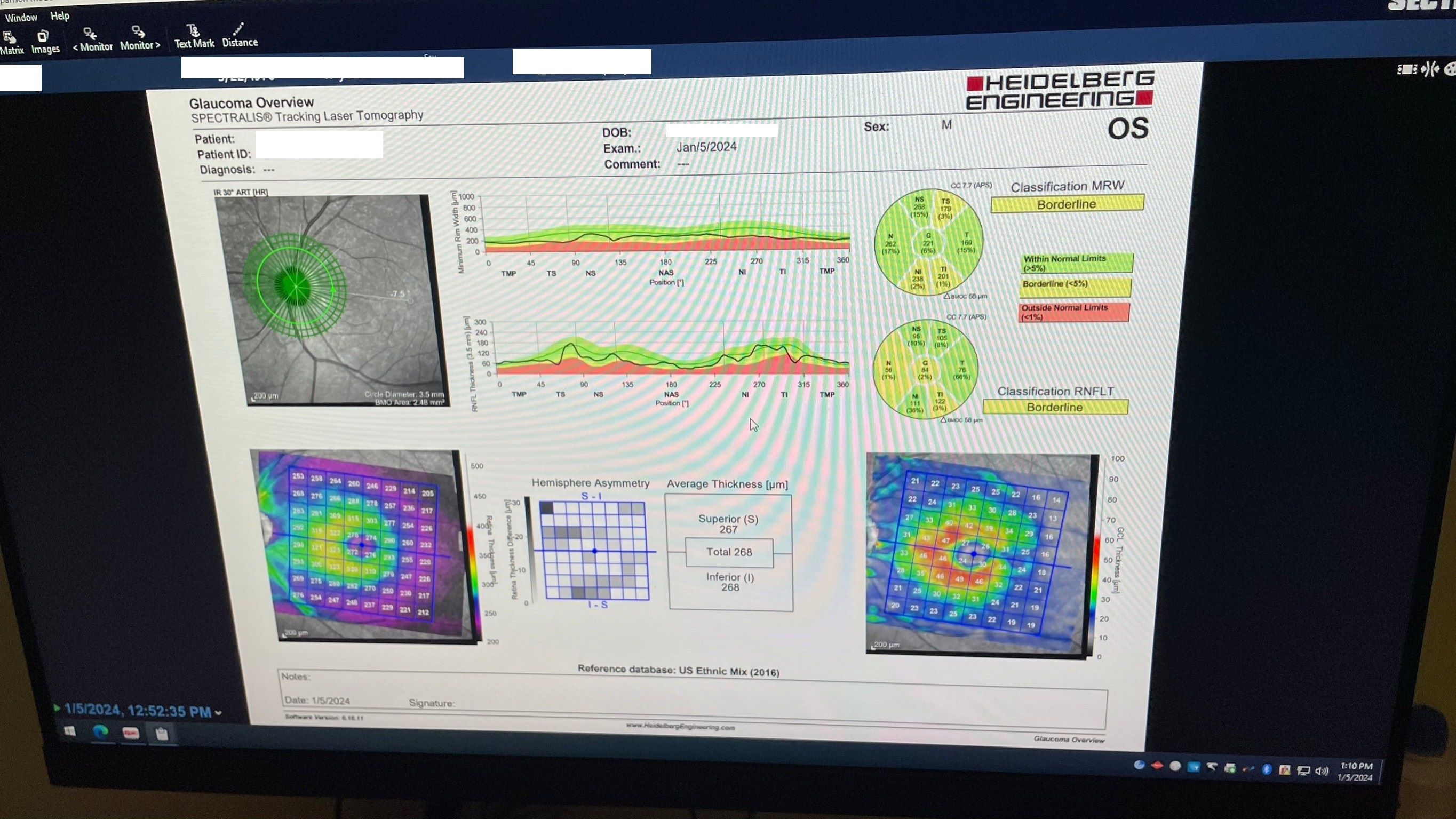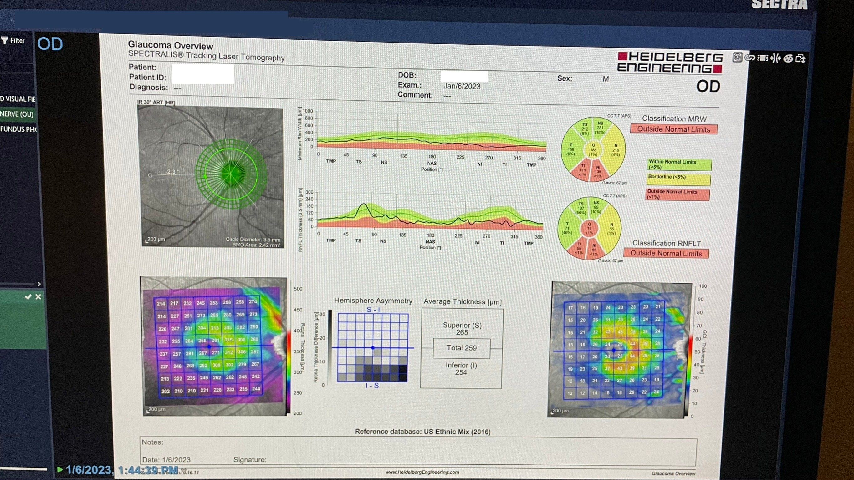 OCT rnfl: OD: inferior thinning OS: global borderline