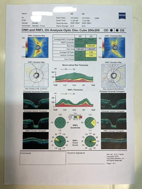及後我再找另一位眼科醫師聽取意見,他安排我進行視野檢查。他連同第一位醫師做的OCT報告解說,結論我沒有青光,眼藥都不用點,定期追蹤便可。