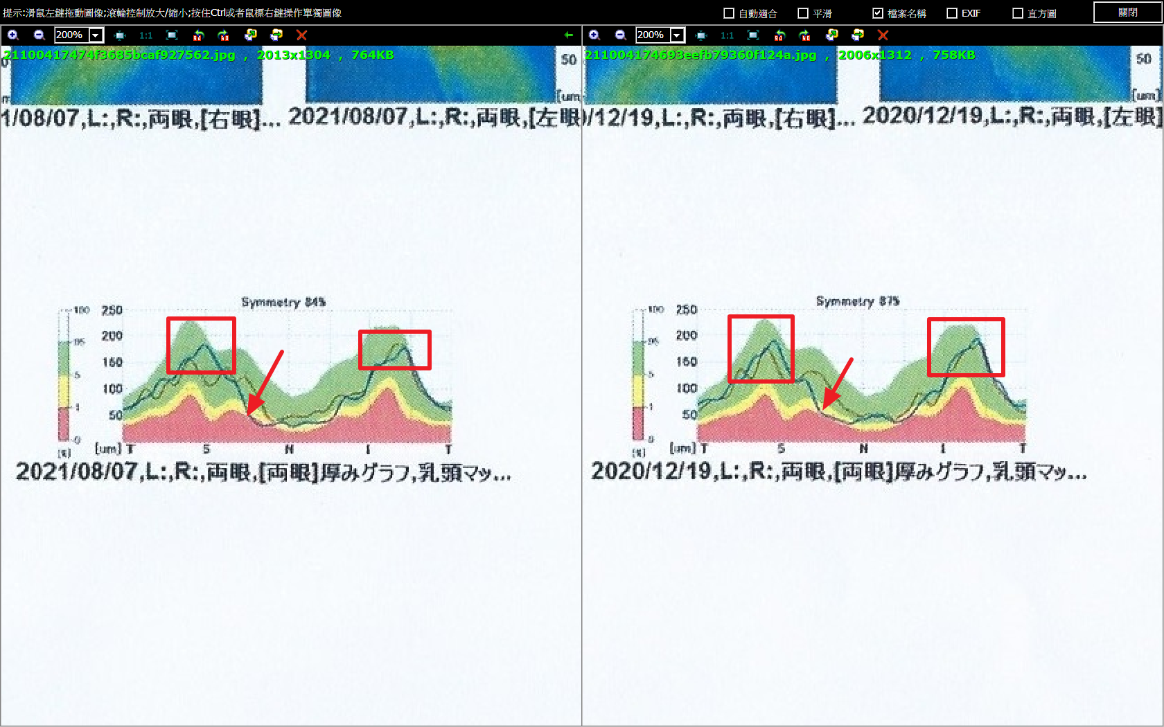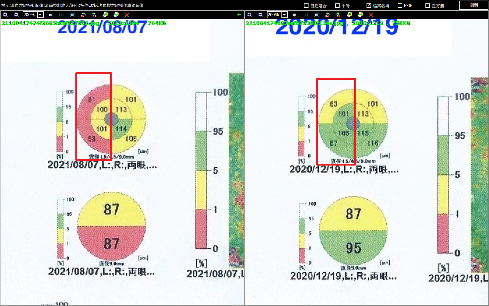 總共有兩份,一份是去年2020年12月的,另一份是2021年8月的,兩份都是還未點藥前的狀況。