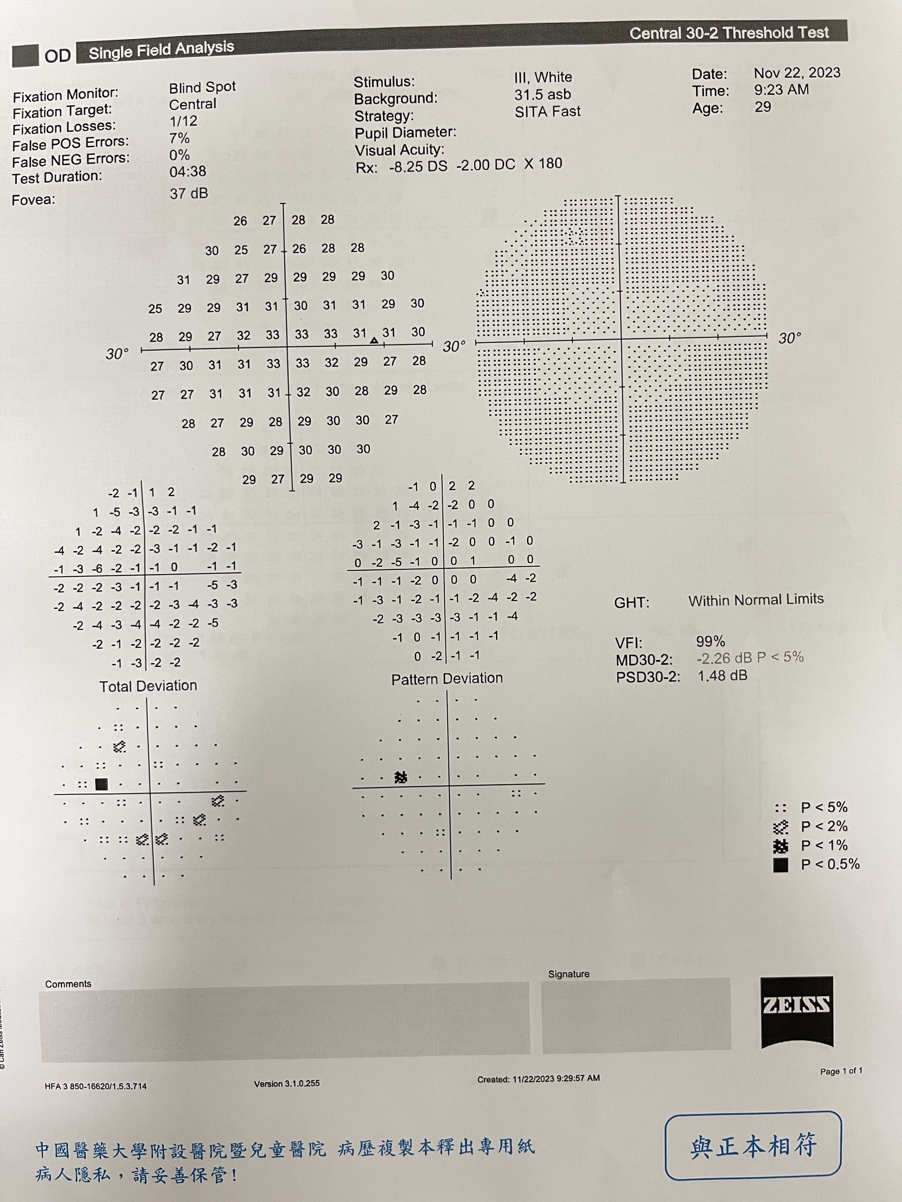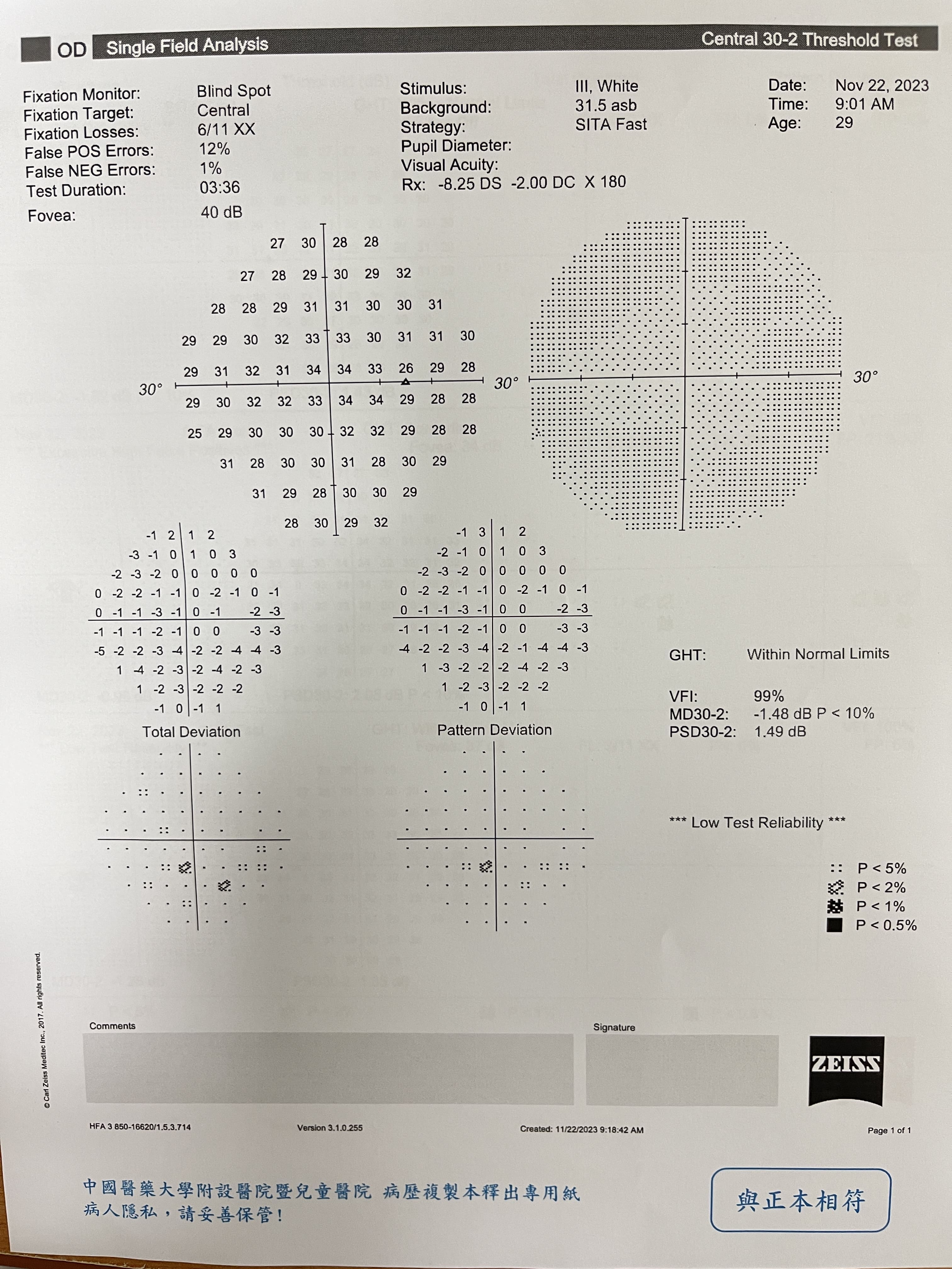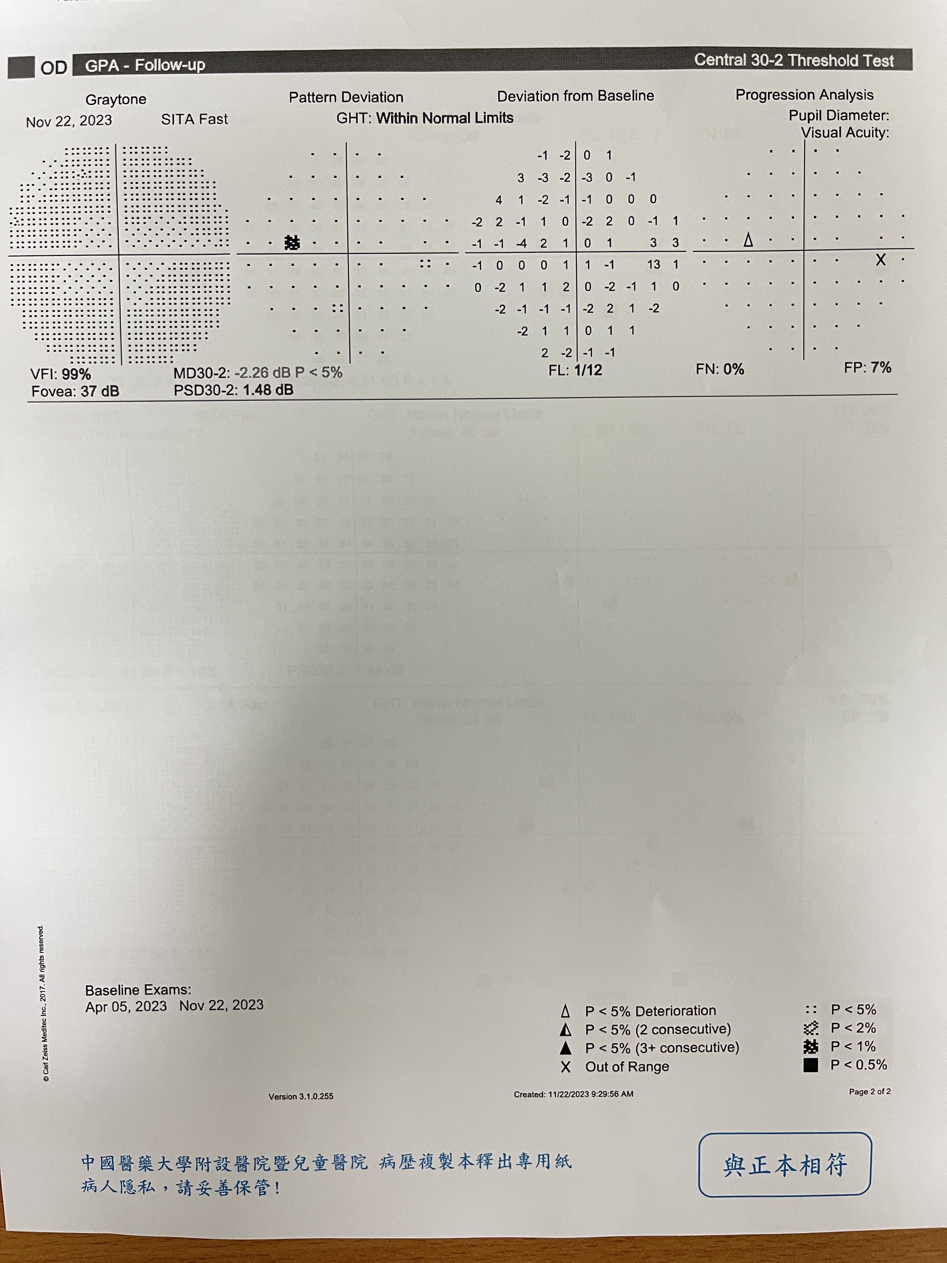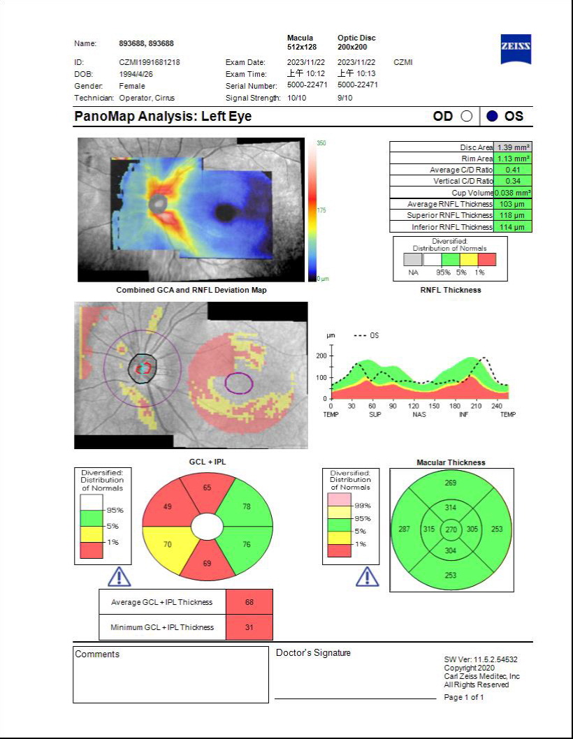 11/22 有去台中中國醫掛邵X菁門診,之前也看診過一次她建議回來追蹤,有附上我的報告,可以請您幫忙查看是否為青光眼初期嗎?請求版主幫忙分析,感謝您。