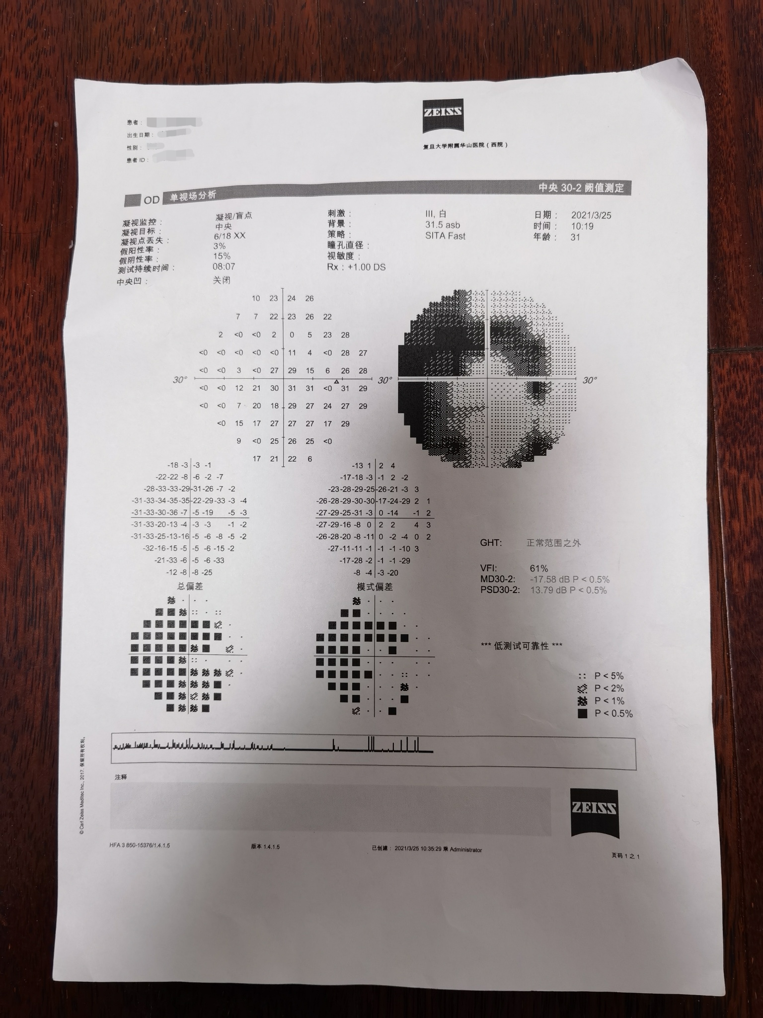 第二次视野检查报告 2021-03-30(带隐形眼镜,在另一家医院):