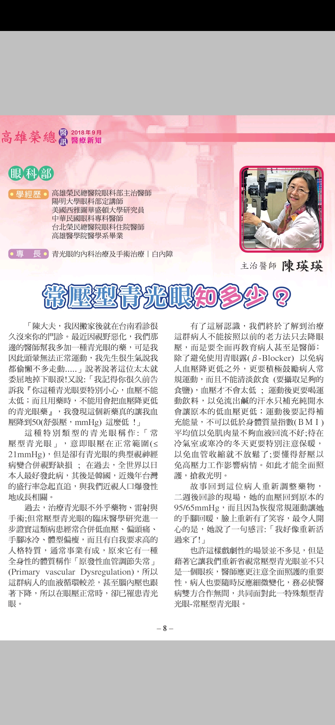 感謝分享,我想正常眼壓青光眼的成因是複雜的,一般也認為是多因素而非單一因素造成的,性格特質就是其中一樣項,不管如何,我們都必須接受它,再每天點藥,定期回診就好,我想大部分的人只要這樣做,視野都能得到控制,眼睛能使用一輩子