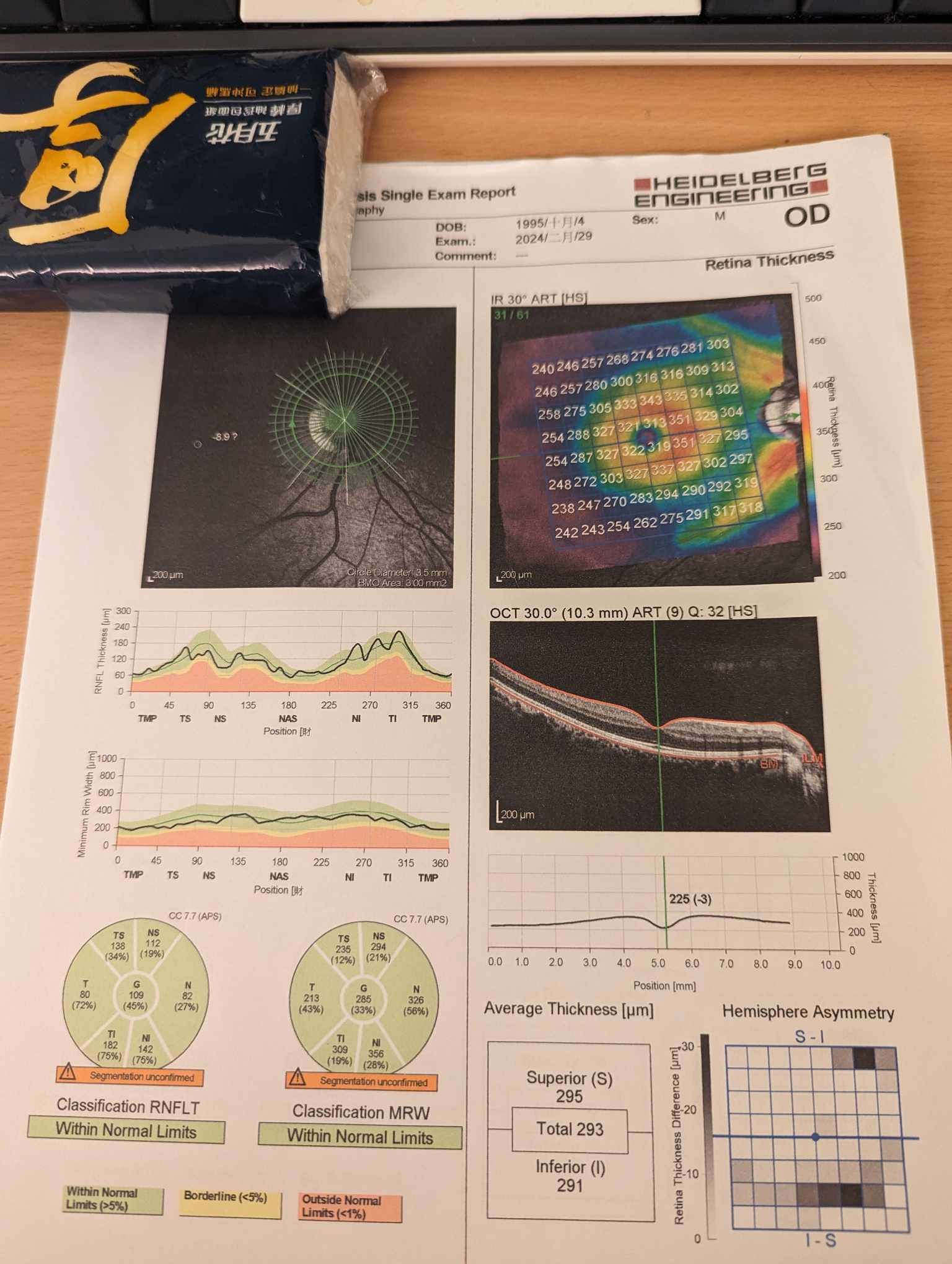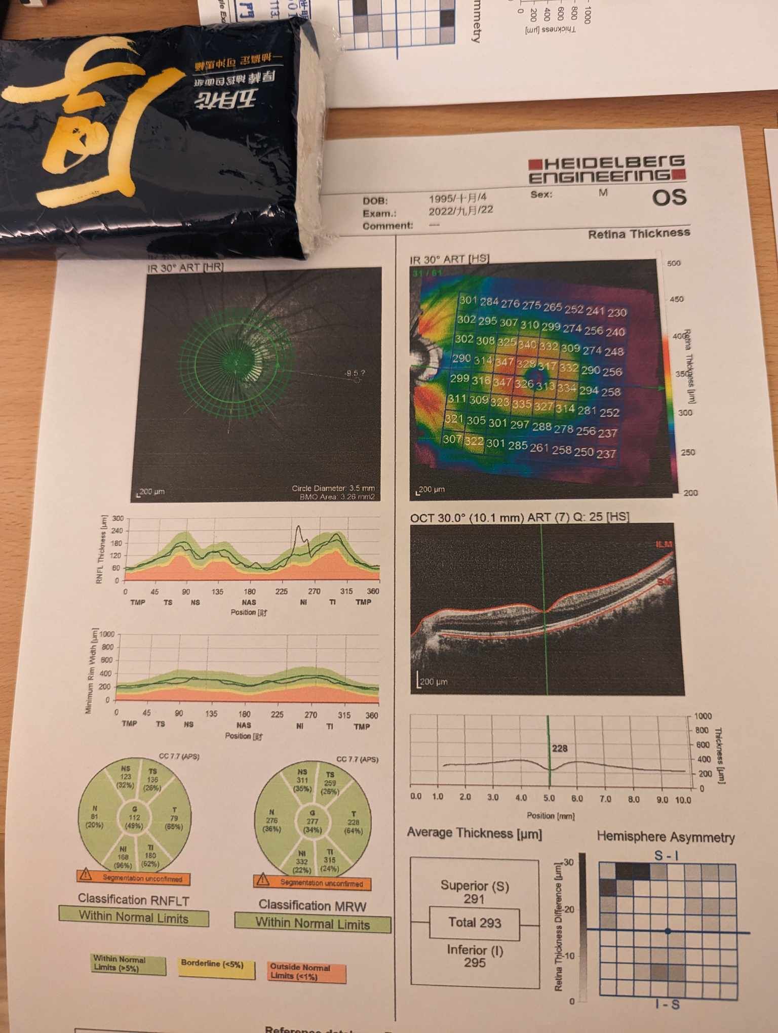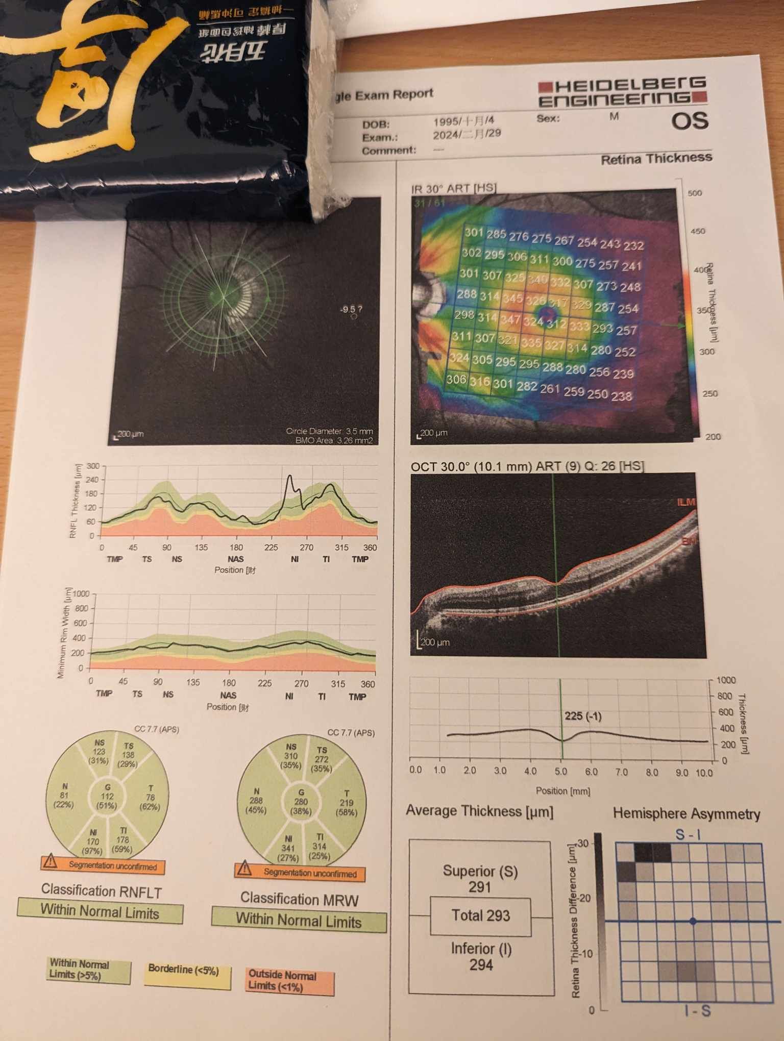 版主您好,所以目前來說我的視野報告(OD)是有參考意義的嗎,想詢問OCT OD TS~NS比較凹的部分是否有對應到視野檢查缺失的部分,另外想詢問眼壓這樣的波動是可以接受的嗎?,因為之前平常晚上在診所大概都是14~16左右,另外這次是看北市聯的顏竹佑醫師,因為看簡介也是青光眼科的,但是這次看診比較神奇的是完全沒有用裂隙燈看我的眼底,只有單純看眼壓及OCT的部分。